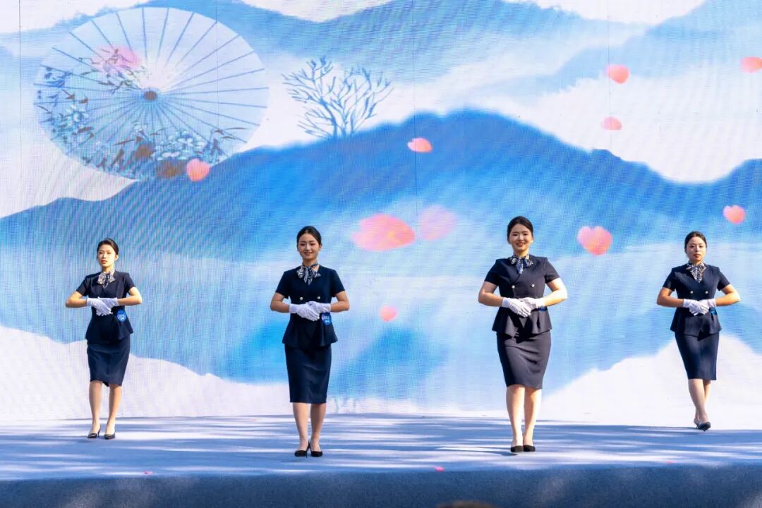 在团队展示中,各代表队身着统一工装,精神饱满,动作整齐划一,礼仪操表演尽显专业风范。