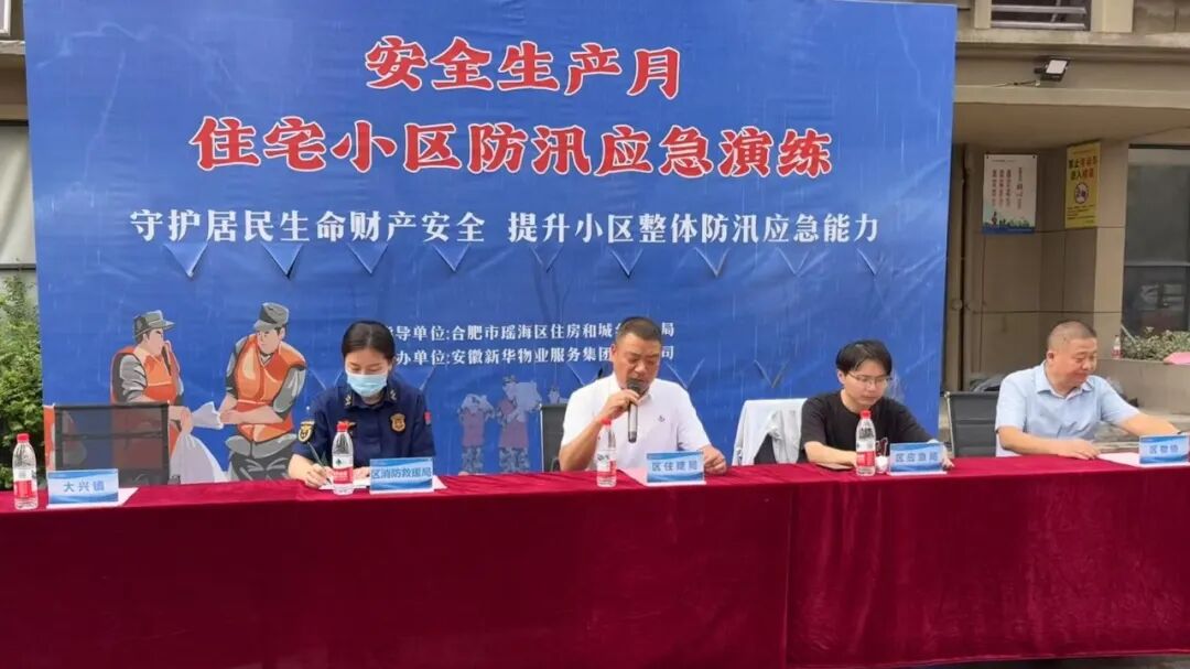 为守护居民生命财产安全,提升小区整体防汛应急能力,6月26日下午,合肥市瑶海区住房和城乡建设局、区应急管理局、区消防救援大队、区物业协会联合安徽新华物业服务集团有限公司,在大兴镇伏龙社区龙祥家园小区顺利举办“安全生产月”住宅小区防汛应急演练。