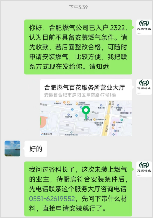 如今,幸好新入驻小区的合肥悠然物业服务有限公司在了解业主的困境及诉求后尽心推进,又有热心业主代表积极参与申请,“这下子,终于通上气了,做饭再也不用受煎熬了!”