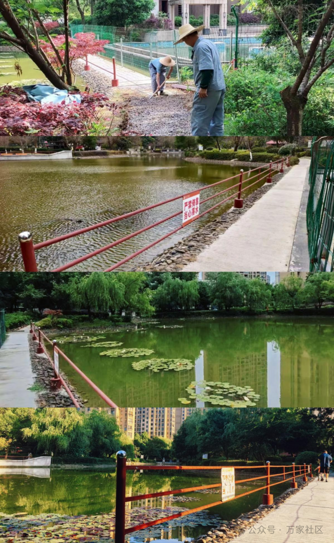 为解决主干道车辆通行安全隐患并满足居民休闲健身需求,物业牵头改造环湖小道。经业主全票通过,在2024年4月16日正式启动施工,仅用一个月就建成800㎡环湖健身步道。