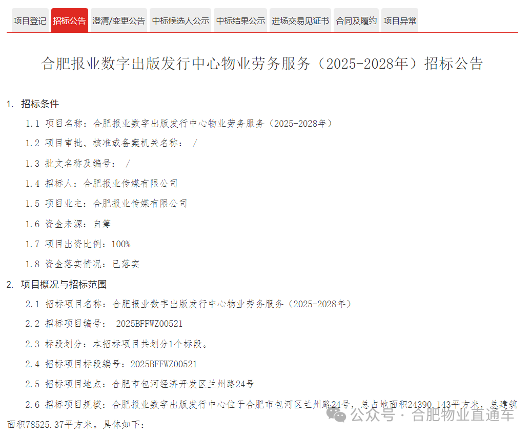 项目名称:合肥报业数字出版发行中心物业劳务服务(2025-2028年)