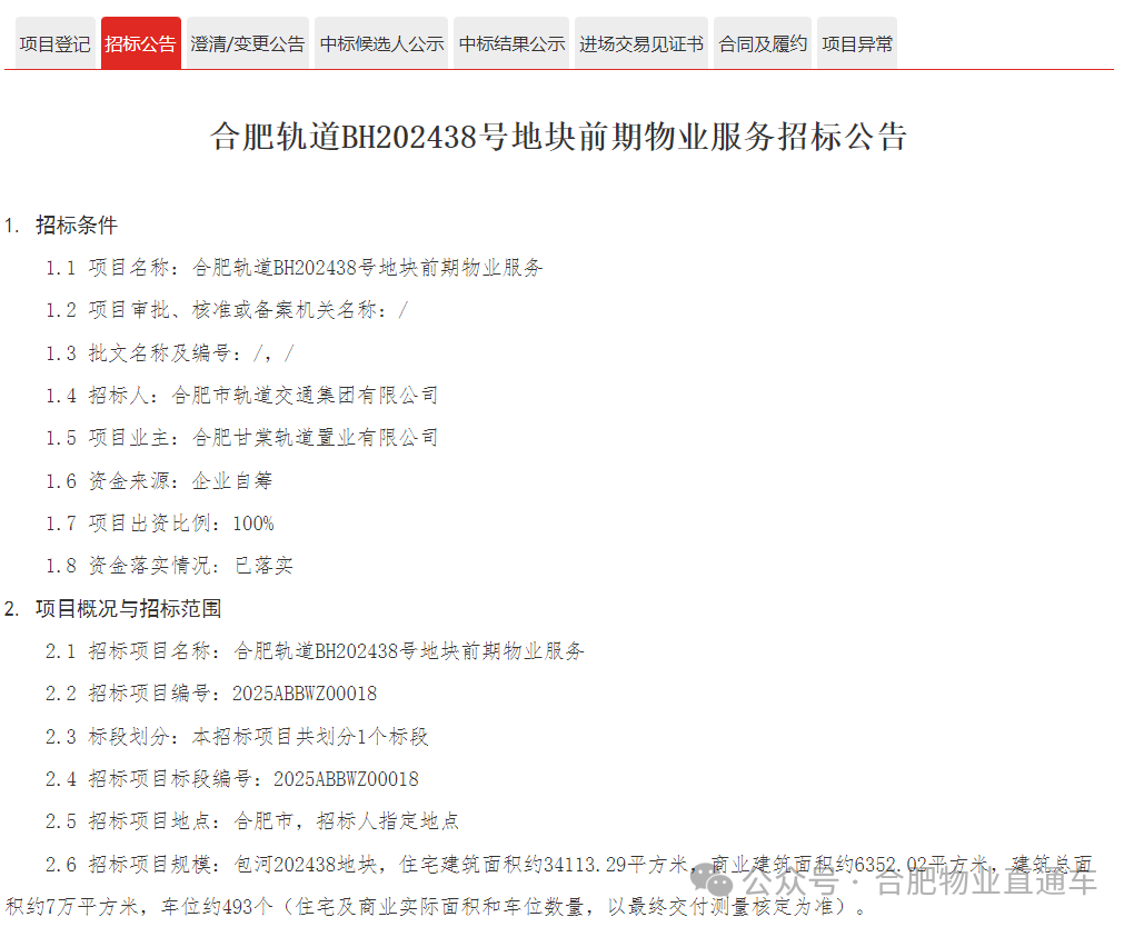 蜀山区SS202403号地块前期物业招标公告