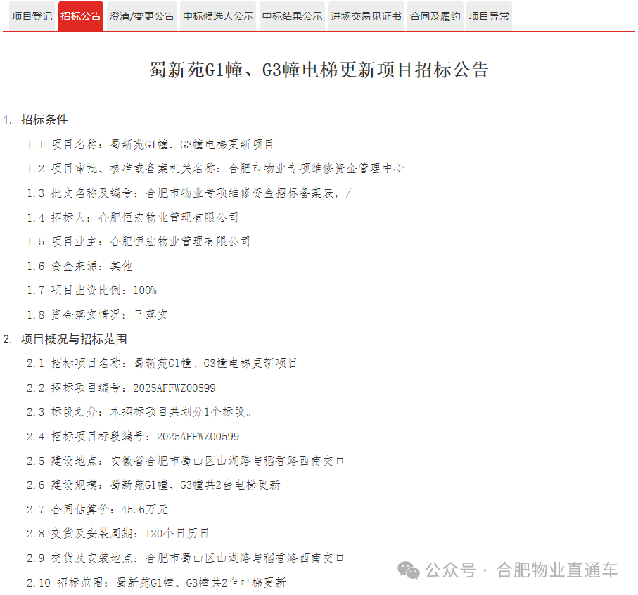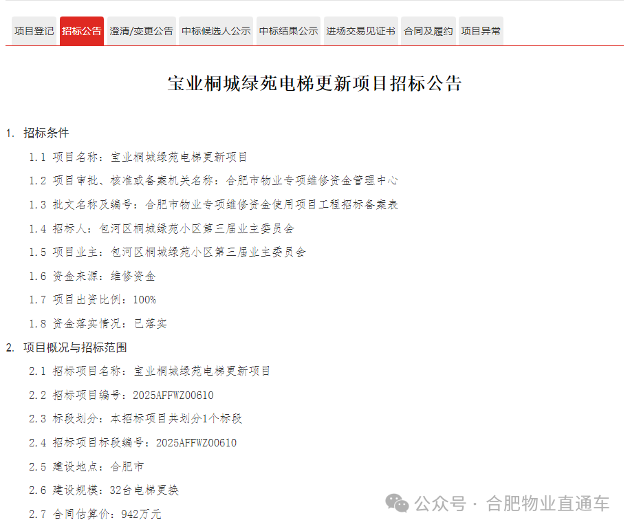 电梯更新项目招标公告
